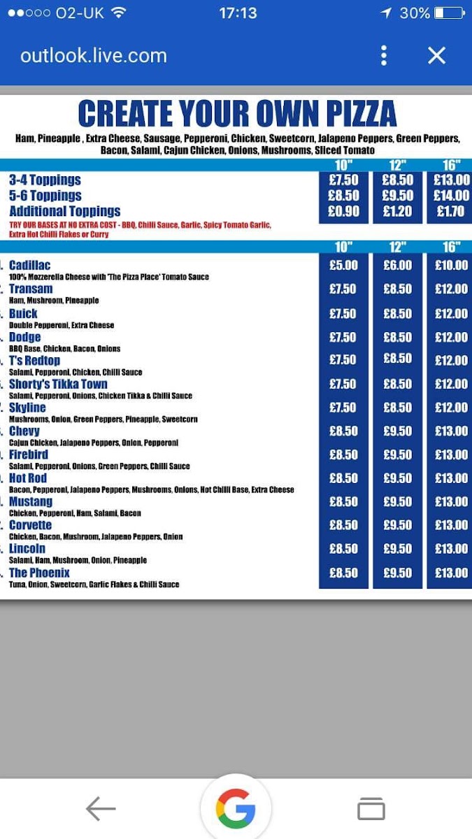 Introducing the menu at Pizza Place, located at 178 Lenadoon Ave, Belfast, is a delightful journey for the taste buds. With a passion for delicious food, this eatery boasts a diverse array of dishes that cater to various cravings. Notably, the menu features pizzas with engaging names like Cadillac, Transam, and Firebird, along with hearty options such as Shorty's Tikka Town and Lincoln.